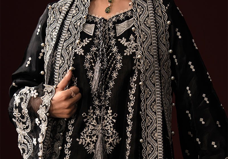 - Embroidered Organza Neckline Finishing