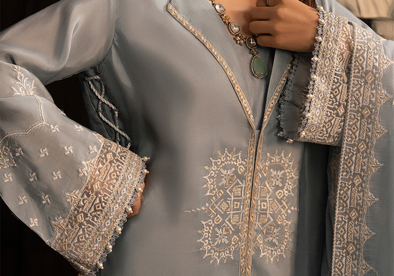 - Embroidered Organza Neckline Finishing
